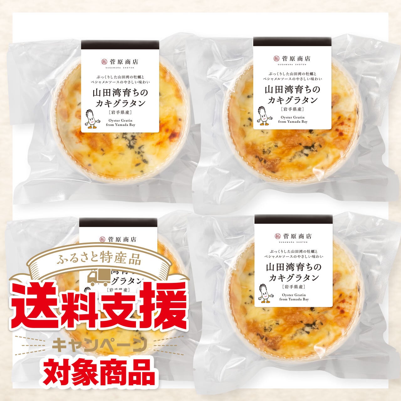 紙皿タイプの「山田湾育ちのカキグラタン」4個セットです。